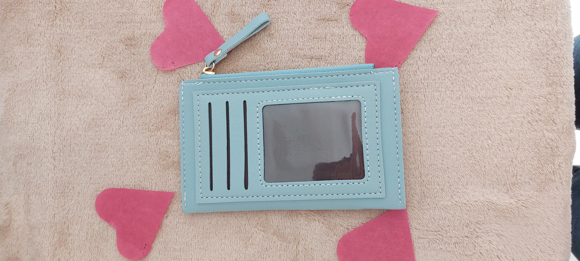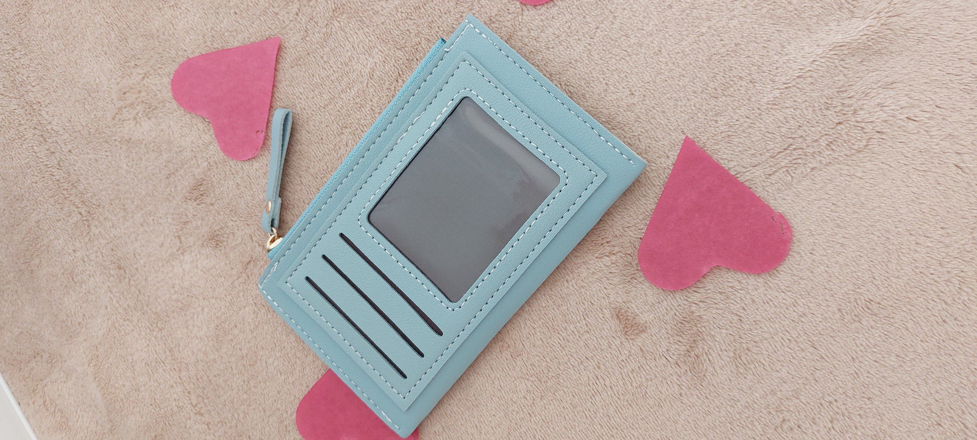 Offrez à votre grand-mère ce porte-monnaie en similicuir bleu et blanc, à la fois élégant et pratique, pour sa fête.